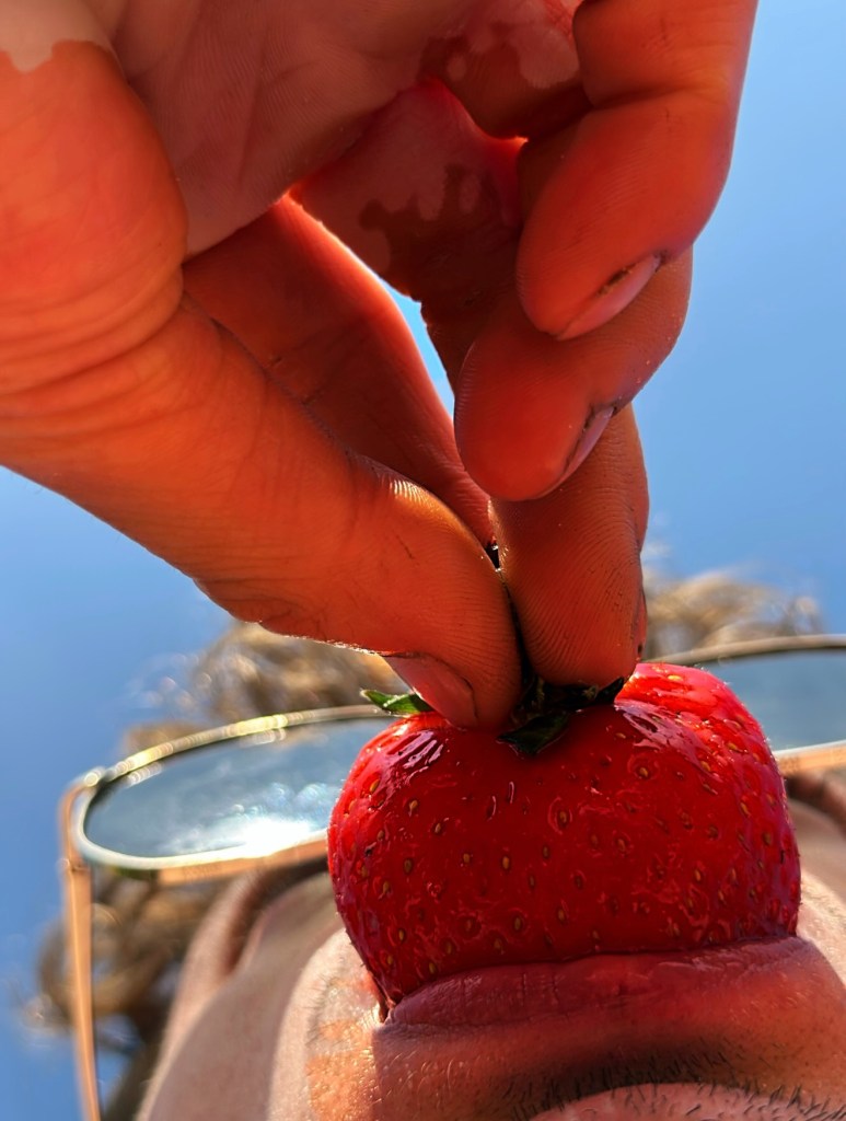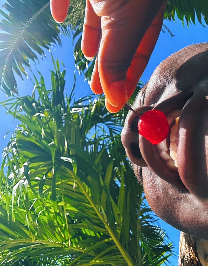 These images were taken in a moment of playful spontaneity — capturing the pure joy of summer and colour. I wanted to explore the intimacy of perspective and the sensory overload of heat and fruit. By shooting from below, everything feels larger than life: the blue skies, the saturated fruit, the closeness of skin and sun. They’re small moments that taste like holidays.